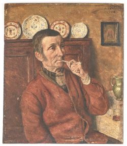 ‘Man met pijp’, olieverf op een eiken paneeltje, gesigneerd A. Dekker en gedateerd 1858.