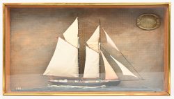 “The Grand Banks Fishing Schooner Elsie 1910”, een schaalmodel in vitrine-display.