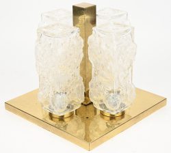 Een vintage plaffonière, messing en frostglass, gemerkt Hillebrand.