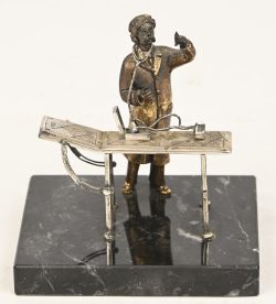 Een dokter aan zijn werktafel, zilver, gemerkt 925, op marmeren voetje.