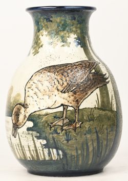 Een aardewerken vaas met een drinkende eend in het decor, gemerkt Amphora, Austria.