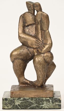 “Verliefd koppel”, een modernistisch bronzen beeldje op groen marmeren sokkeltje. Monogram?