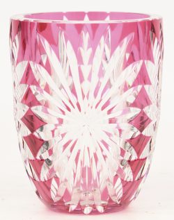 Een geslepen kristallen vaas rood in de massa. Onderaan gemerkt VSL.