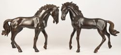 Een lot van twee bronzen paarden, niet gesigneerd.