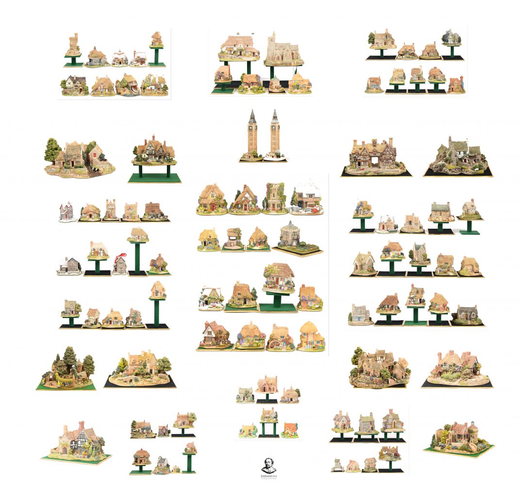 - Large variety in one sale: cottages, buildings, scenic bases, and display sets