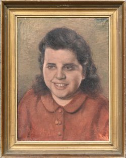 “Meisjesportret.” Olieverf op doek. Gesigneerd.
