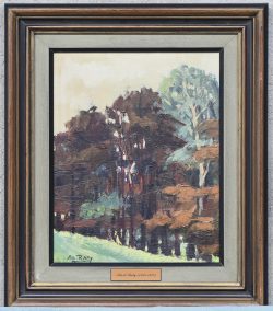 ‘Herfstlandschap met bomen’. Olieverf op doek. Draagt de handtekening; Alb. Raty.