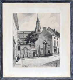 ‘Wetteren 1973’, aquarel. Getekend; Walter Verbaere.