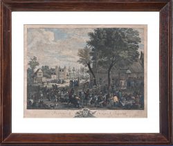 “Fête Flamande - A Madame la Marquise de Pompadour.” Ingekleurde gravure naar een werk van David Teniers. Papierroest.