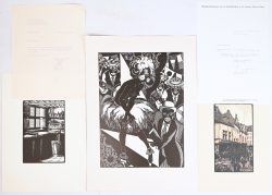Drie hoogdrukken van Eduard Pellens, Henry Van Straten en een derde niet gekende kunstenaar. Herdrukken van de originele plaat door het museum Plantin Moretus te Antwerpen. Zonder kader.