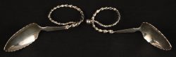 Twee zilveren hors-d'oeuvre lepeltjes, gemerkt MW 830 S. Met een brutogewicht van 35 gram.