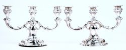 Een set van 2 zilveren kandelaars met 3 armen, Duitse keuren, gemerkt 835. 510 gram samen.AR8
