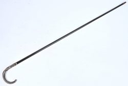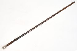 Een wandelstok, circa 1900, met zilveren handvat, gemerkt Delheid.