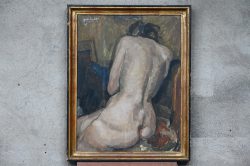 ‘Zittend naakt’, olieverf op doek. Getekend Gust Verhelst.
