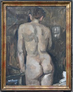 ‘Staand naakt’, olieverf op doek. Getekend Gust Verhelst.