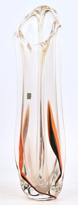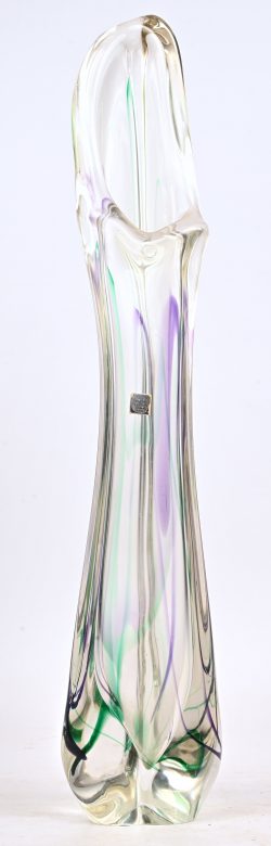 Een vintage kristallen vaas door Max Verboeket voor Kristalunie Maastricht. Onderaan gesigneerd en met label gemerkt.