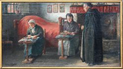 ‘Kantklosters’, olieverf op doek. Getekend Ed. Vanderhaeghen.