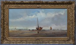 ‘Visserssloep op het strand’, naar 19e eeuws voorbeeld. Getekend Hendrick Vader.