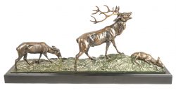 ‘Edelherten met kalf’, een groep van kunstbrons op een zwart marmeren voet. Getelend P. J. Mène, statua.