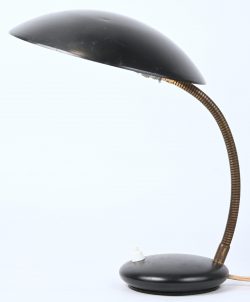 Een vintage U.F.O. bureaulamp, koper en zwart metaal.