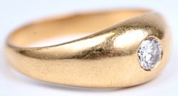 Een 18 kt geelgouden ring bezet met een solitair van +- 0,25 ct.