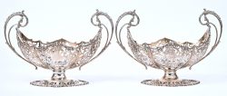 Twee zilveren broodmandjes, gemerkt London, jaarletter C, 1918, makers merk D.F Josiah Williams & Co (David Landsborough Fullerton). 1315 gram.