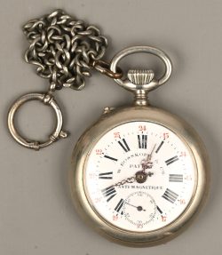 A stainless steel pocket watch. Working.