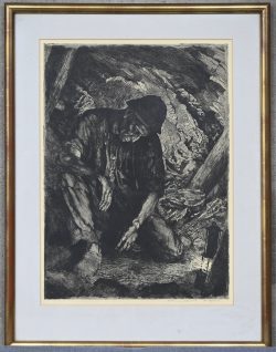 ‘Een dichter met visioenen’, een monochrome ets met droogstempel van M. Langaskens. Niet ingelijst.