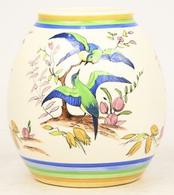 Een amforavormige vaas van meerkleurig porselein. Gemerkt; Mangani.