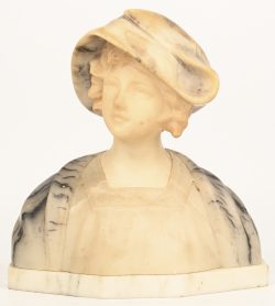 ‘Buste van een jonge vrouw’, een beeldje van gepatinneerd brons. Getekend Straber.