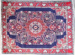 “Veelkleurig bloemenstilleven in blauwe pot.” Olieverf op board. Gesigneerd.