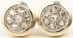 Een paar 18 kt wit-en geelgouden oorbellen bezet met oud geslepen diamanten met een gezamenlijk gewicht van 0,30 ct.