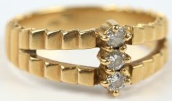 Een 18 kt geelgouden ring bezet met briljanten met een gezamenlijk gewicht van 0,15 ct.