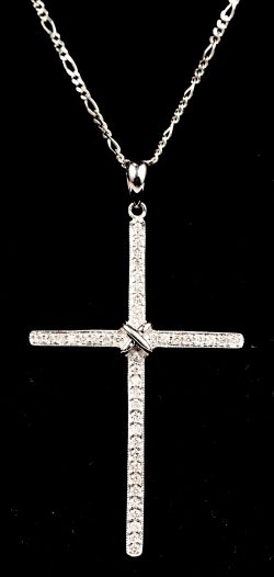 Een 18 kt witgouden ketting met hanger bezet met een diamant van +- 1 ct.