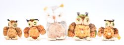 Zes egels waaronder Macky/Mucky en twee gemerkt Steiff.