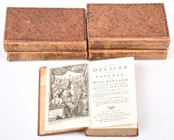 "The Delights of the NETHERLANDS or Geographical and Historical Description of the Seventeen Belgian Provinces", 5 volumes, Seventh Edition, 1786.Dim. 3 x 17.5 x 10.5 cmEstimate: € 60/80 -