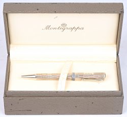 Een pen van het merk Dupont met zilveren delen en laque de Chine. In originele doos.