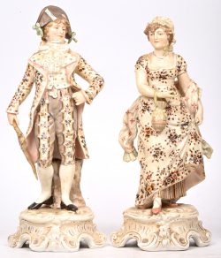 “Madonna en kind” en “Sint-Jozef”. Twee beeldjes vanpolychroom biscuit en porselein. Mogelijk Brussel begin XXste eeuw.