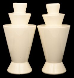 Een set monochrome art-deco vazen, Charles Catteau, 1927, model F1079, gemerkt ‘made in Belgium’, en genummerd. Eén vaas is gerestaureerd aan de hals.