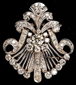 Een paar 18 kt witgouden oorbellen bezet met 26 kleine briljanten en twee parels.