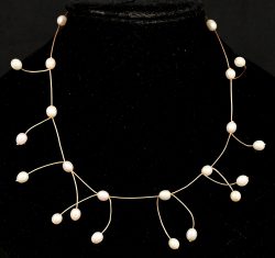 Een 18 kt geelgouden halssnoer bezet met parels.