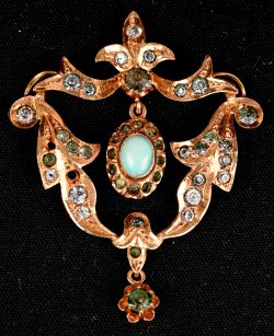Een 18 kt geelgouden hanger bezet met half edelstenen.