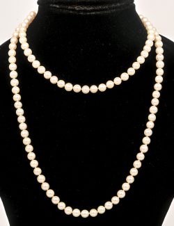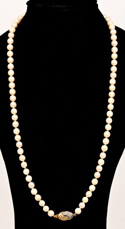 Een parelhalssnoer met 18 kt wit-en geelgouden slot.