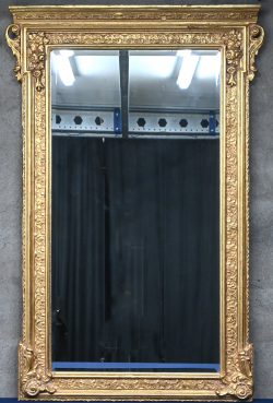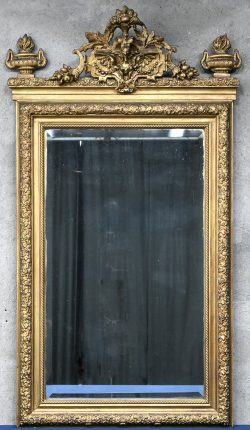Een geslepen spiegel in vergulde lijst.