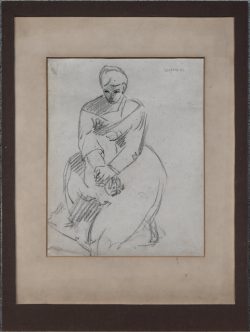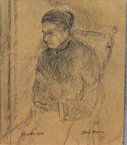 ‘Een jong koppel’. Krijttekening op papier. Getekend.