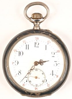 Een zilveren art-nouveau zakhorloge met Duitse keuren.