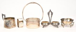 Een set van zes zoutvatjes met lepeltjes in casette. Glazen potjes in zilveren voet, gemerkt 800. Met een nettogewicht van 150 gram zilver. Op de doos een gedenkplaatje als geschenk aan Sir Arthur Yap K.B.E. van de Y.M.C.A.