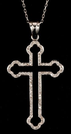 Een 18 kt witgouden ketting met crucifixhanger bezet met briljanten met een gezamenlijk gewicht van 0,26 ct.