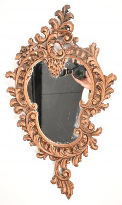 Een spiegel met massief eiken gesculpteerde kader in Rococo stijl.