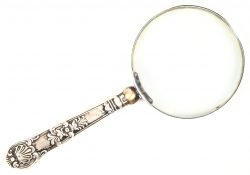 Een loupe met zilveren handvat.